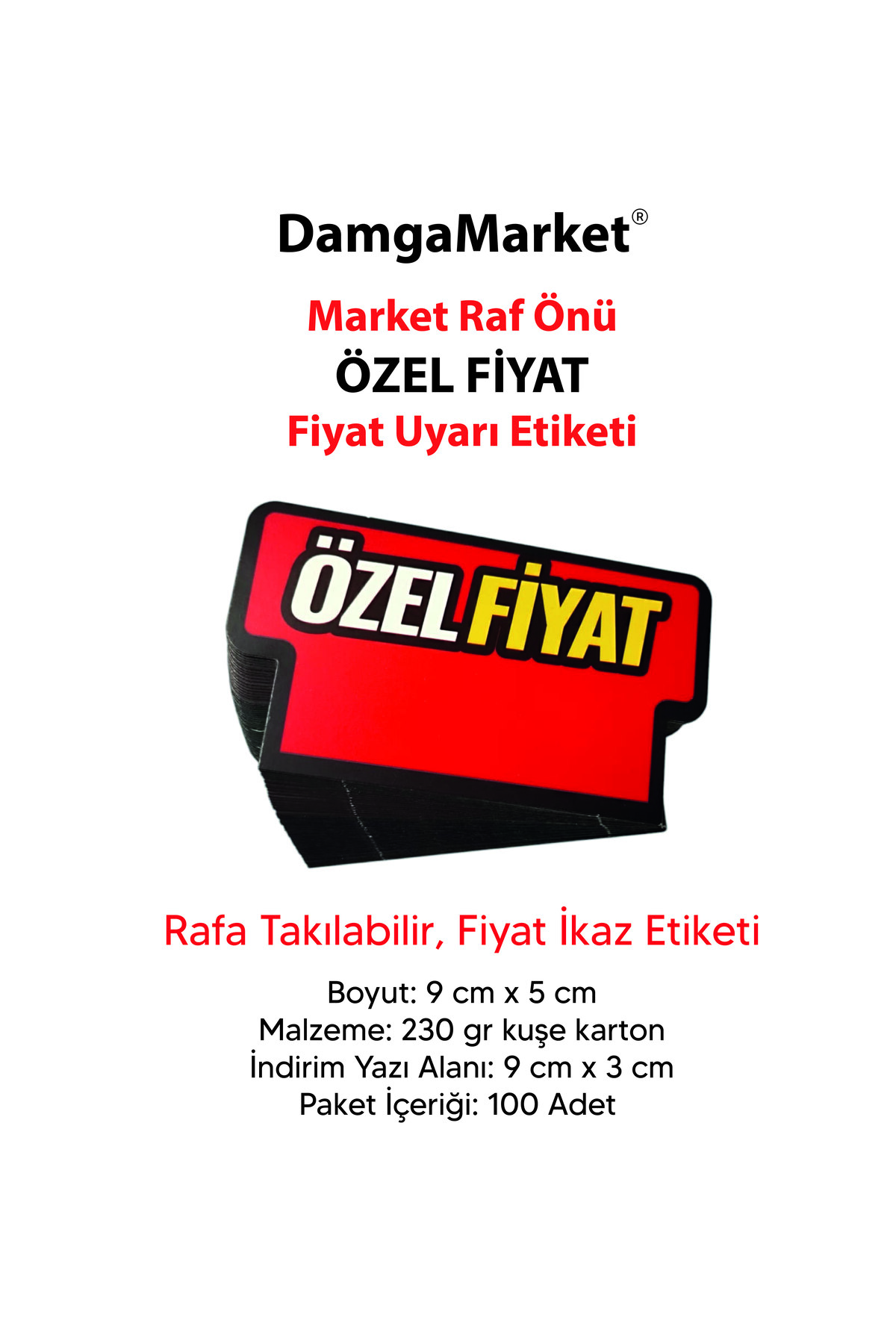 DamgaMarket, perakende satış noktaları için özel olarak tasarlanmış PVC, PET gibi plastik malzemelerden üretilen baskısız raf fiyat etiketlikleri ve diğer çeşitli ürünleri sunmaktadır. Firmamız, sektördeki liderliğini kalite odaklı üretim anlayışıyla sağlamaktadır. Her aşamada titizlikle çalışarak, müşterilerimizin beklentilerini karşılayacak ürünler sunmayı amaçlamaktayız.