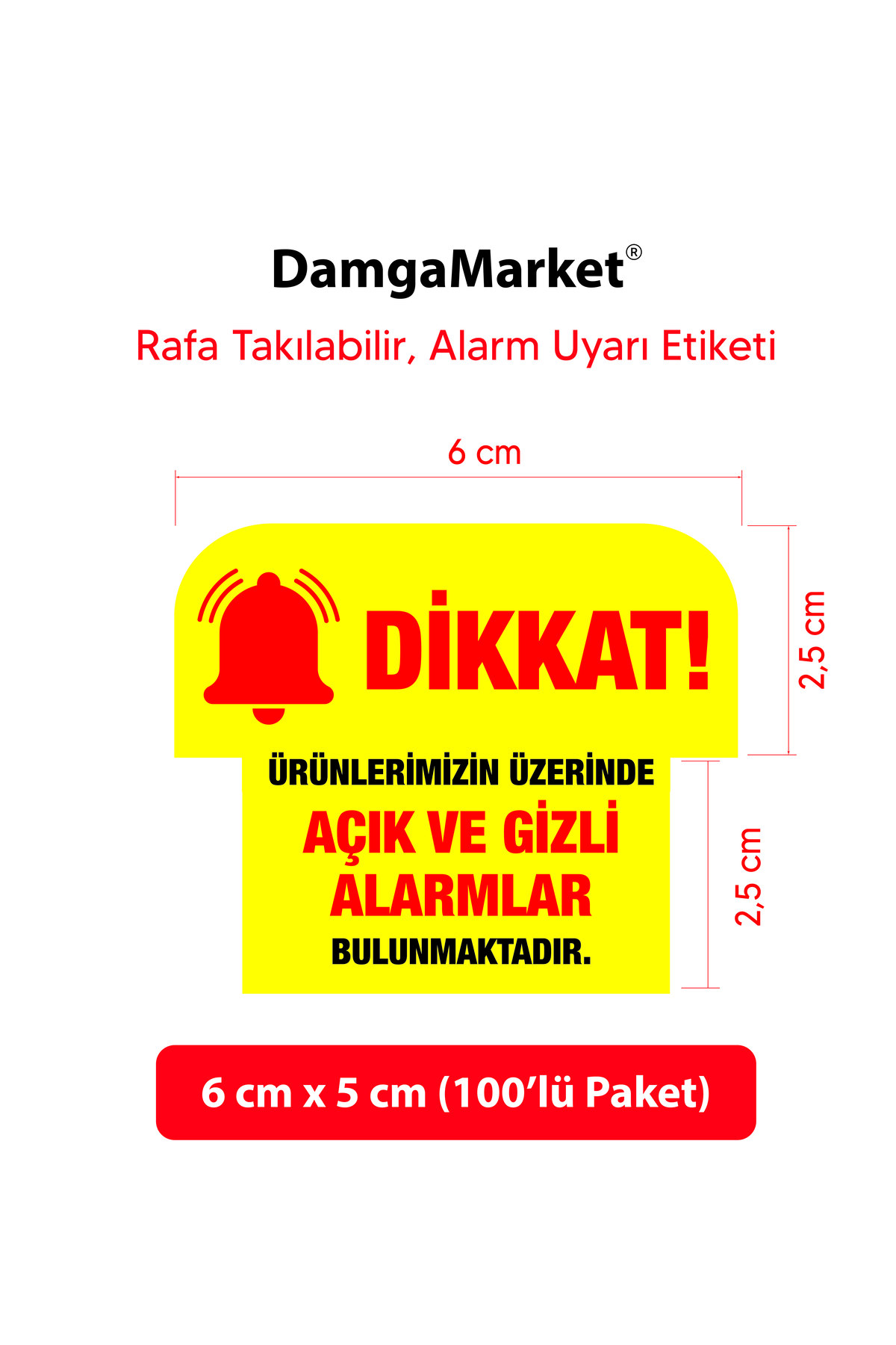Mağaza AÇIK ve GİZLİ ALARM İkaz Etiketi, Uyarı Etiketi, 6 cm x 5 cm, Rafa Takılabilir, 100’lü Paket, ürün fiyatlarını ve bilgilerini düzenli ve net bir şekilde göstermek için geliştirilmiş, profesyonel sunum sağlayan bir üründür. Market, manav, şarküteri, eczane, kafe, pastane ve tüm perakende işletmelerde kullanılmaya uygundur.