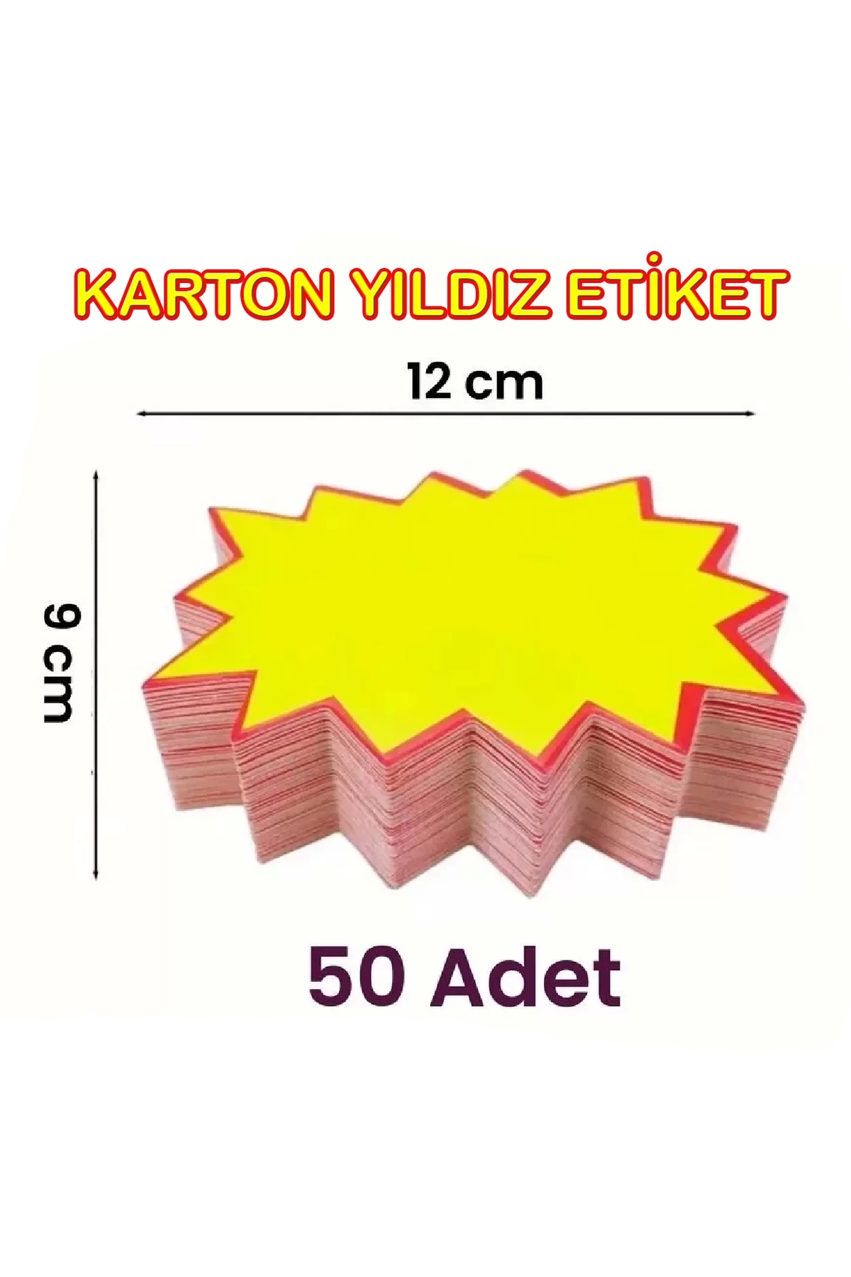 Sarı Yıldız Karton Fiyat Etiketi 9×12 cm 50 adet Mağaza Bakkal ve Süpermarket Boş Yıldız Etiketi, ürün fiyatlarını ve bilgilerini düzenli ve net bir şekilde göstermek için geliştirilmiş, profesyonel sunum sağlayan bir üründür. Market, manav, şarküteri, eczane, kafe, pastane ve tüm perakende işletmelerde kullanılmaya uygundur.