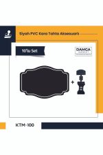 Ayarlanabilir Mandallı Siyah PVC Levhalar | Yeniden Yazılabilir Etiketlikler ve Mandal Seti DamgaMarket’in Ayarlanabilir Mandallı Siyah PVC Levha seti, işletmenizin düzenini sağlamak ve ürün fiyatlarını profesyonelce sergilemek için ideal bir çözümdür.; Bu set, 10 adet Siyah PVC Etiketlik ve 10 adet Ayarlanabilir Mandal içerir.; Anahtar Özellikler: Yeniden Yazılabilir PVC Etiketlikler: Silinebilir, mat ve gözeneksiz yüzey, yazıları malzemenin içine girmesini önler ve silindiğinde hoş olmayan izler bırakmaz.; Marvy/Uni Posca Tebeşir kalem işaretleyicileri ile yazılabilir.; ; Çeşitli Kullanım Alanları: Tüm ürün kategorileri için uygundur.; Perakende marketlerden pastanelere, çiftliklerden tatlıcılara kadar ticari faaliyetler için tasarlanmıştır.; ; Yüksek Kaliteli PVC Malzeme: 0,50 mikron kalınlığındaki yuvarlatılmış köşeli kara tahtalar, uzun ömürlü kullanım sağlar.; ; Ayarlanabilir Mandal: 360° dönebilen mandal aparatı, her alanda tutunma sağlar ve etiketin açısını istediğiniz gibi ayarlayabilirsiniz.; ; Modern Tasarım: Siyah PVC Etiketlikler, fiyatlara net ve doğrusal bir anlam vermek için modern tasarıma sahiptir.; Her türlü etiketlik aksesuarları ile kullanıma uygun.; ; Çeşitli Uygulamalar: Mağazanızdaki her türlü raf, reyon, sepet veya mobilyaya uyarlanabilir.; Tek tek veya çeşitli aksesuarlarla birlikte satılan bu yazı tahtaları, işletmenizin ihtiyaçlarına uygun olarak kullanılabilir.; ; Mükemmel Kalite/Fiyat Oranı: Bu set, mükemmel kalite/fiyat oranı ile öne çıkar ve işletmenizin profesyonel görünümünü destekler.; ; DamgaMarket Ayarlanabilir Mandallı Siyah PVC Levha seti, işletmenizin düzenini artırmak ve ürünlerinizi etkili bir şekilde tanıtmak için ideal bir çözümdür.; Siz de estetik tasarım ve kullanışlılıkla işletmenizin profesyonel görünümünü güçlendirin!